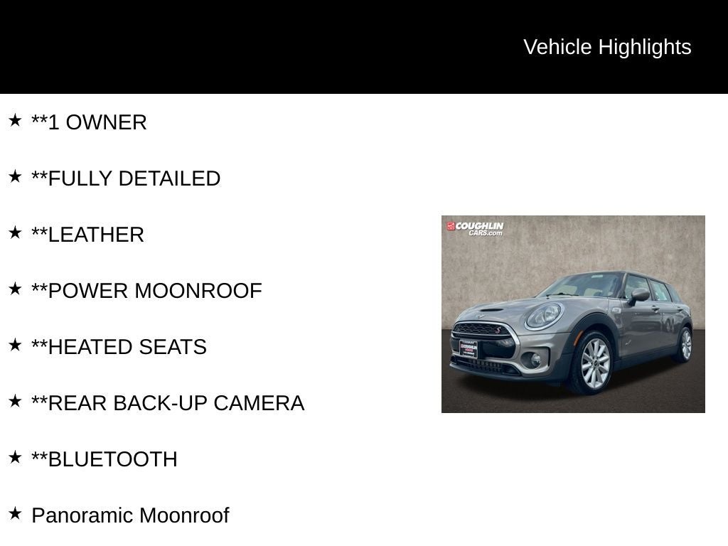 Don't miss your chance to make this exceptional MINI Cooper S Clubman your own. Schedule a test drive today and discover the joy of driving that only a MINI can provide.