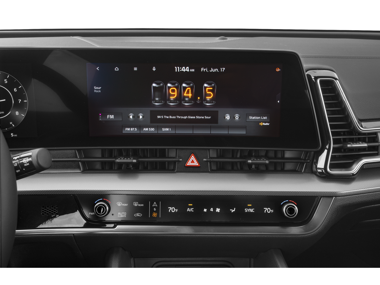 The interior of this Sportage SX is equally impressive, featuring premium Leather seating, a Sunroof, and a state-of-the-art Navigation System to keep you connected and entertained on every journey. The Heated Front Bucket Seats and Leatherette Seat Trim provide unparalleled comfort, while the Garage door transmitter: HomeLink and Automatic temperature control ensure your ride is tailored to your preferences.